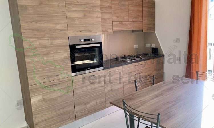 Modern, spacious two-bedroom air-conditioned apartment in Qawra. The property has an open-plan kitchen (equipped with a dishwasher), a dining/living area, a shower ensuite, a family bathroom, and a front/back balcony.
