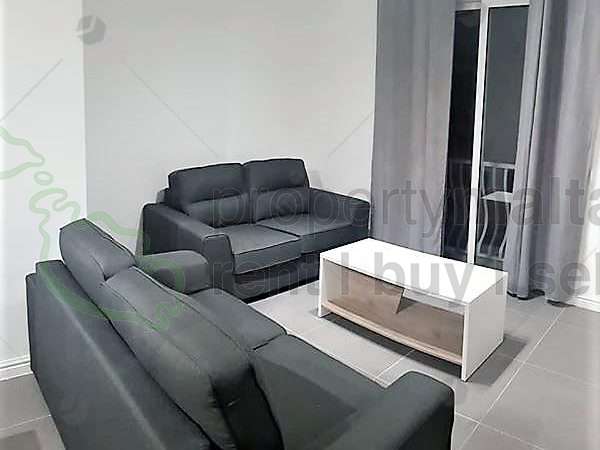 Modern first-floor, two-bedroom apartment in San Gwann situated within walking distance to all amenities. Property comprises an open-plan kitchen/living/dining area leading onto a front balcony, hallway, box room, main bathroom, master bedroom with ensuite facilities and another bedroom setup with a sofa bed which can easily be utilized as a second bedroom. Complementing this property is a spacious backyard accessible from the bedroom. Fully equipped and air conditioned throughout. Served with lift