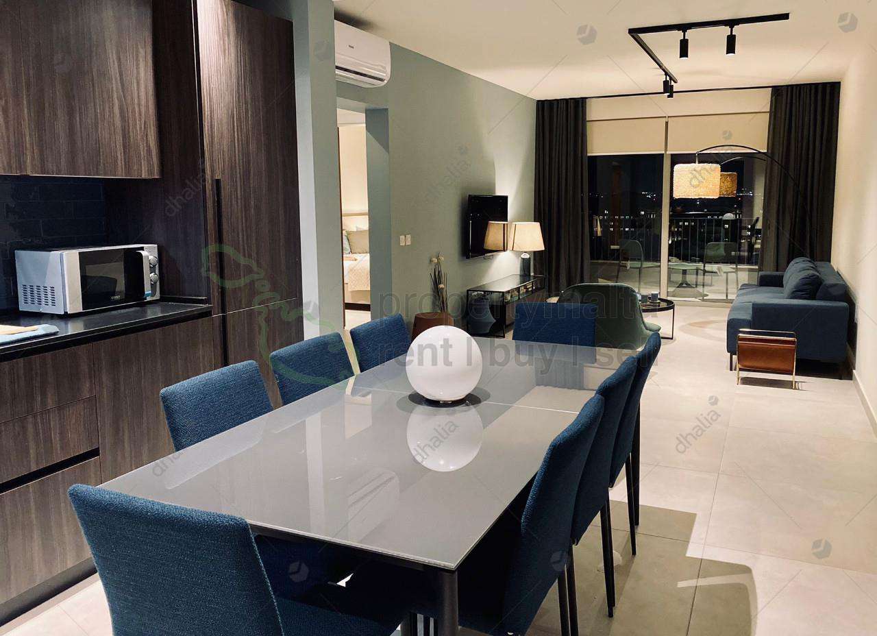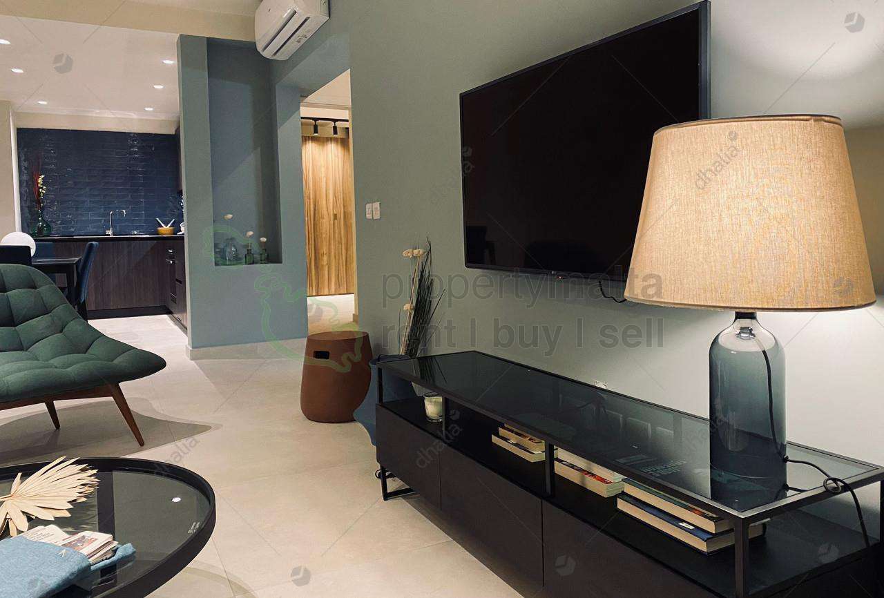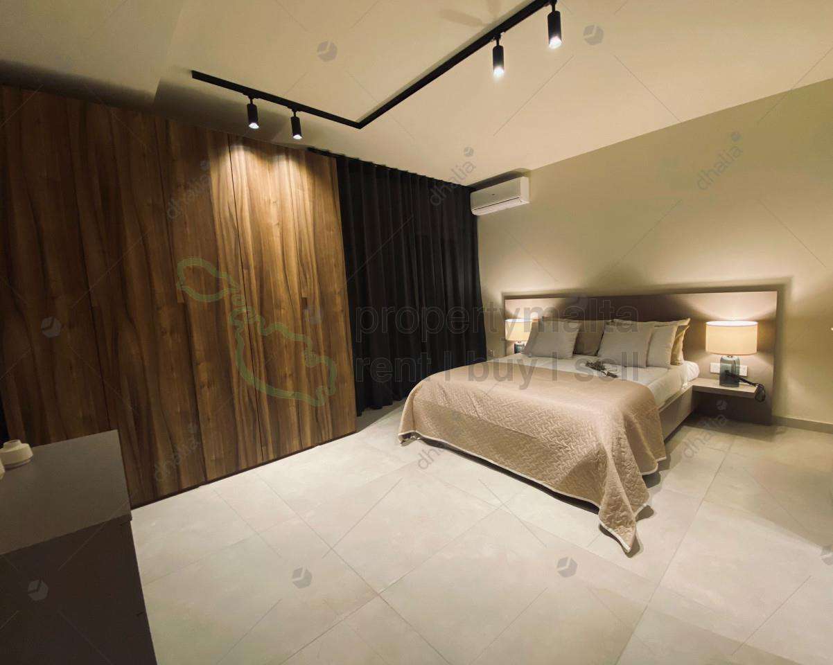 Designer finished three bedroom apartment situated in a central area of San Gwann, within walking distance to all amenities. Property consists of a spacious open kitchen/living/dining area, main bathroom, and three bedrooms main having ensuite facilities. Complimenting this property is good sized L shaped front balcony and use of a communal rooftop. Property comes fully equipped and air conditioned. Served with lift