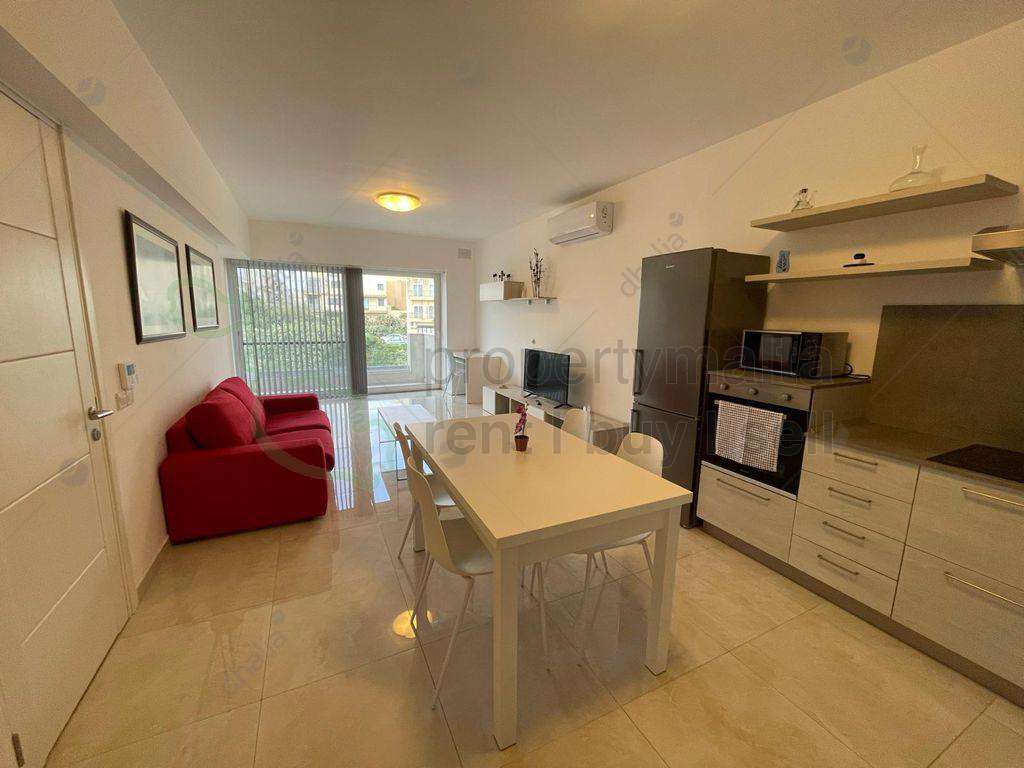Modern and bright, two-bedroom apartment situated just off the centre of San Gwann, close to Mater Dei and all amenities. This property consists of a welcoming, open-plan kitchen/living/dining area leading onto a good-sized front balcony, wide hallway leads to a boxroom, two double bedrooms main with ensuite facilities and the main bathroom. Complementing this property is an area for office or storage and also a back balcony. Fully equipped and air-conditioned.