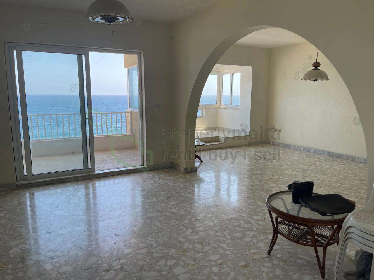 Sliema seafront spacious three bedroom apartment. It features a spacious combined dining and sitting area, a separate kitchen, a closed balcony, and an open balcony, together with a back balcony There are three double bedrooms (main with en suite facilities), a main bathroom, and a laundry room. Additionally, the property includes a lock-up garage located underlying the property.