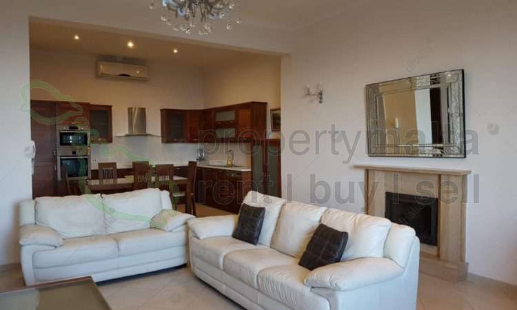 Tastefully furnished first floor seafront apartment situated in a most desirable part of Sliema close to all amenities. This very spacious apartment comprises of a kitchen/living/dining area complimented with a working wood fireplace, main bathroom and three bedrooms (main with shower ensuite). The price also includes a connected one car garage.
