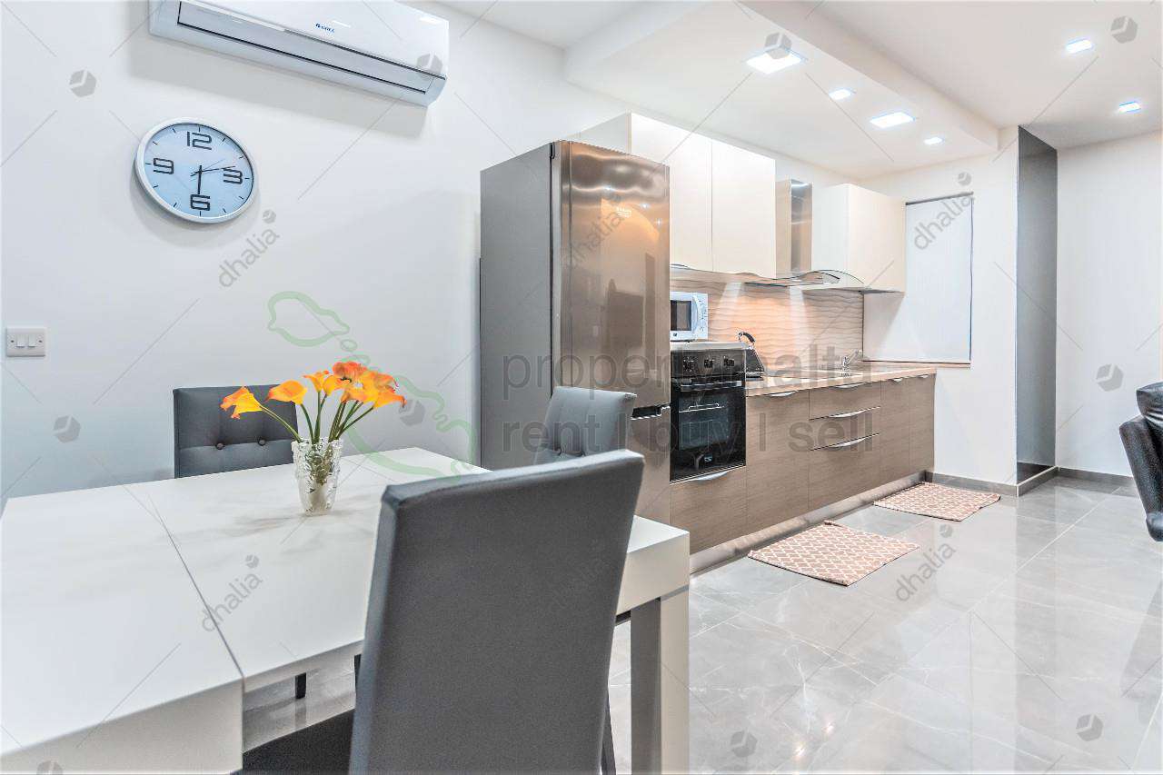 Luxuriously finished, fourth-floor apartment situated in the heart of Sliema. This property consists of a welcoming open-plan kitchen/living/dining area, two double bedrooms main with ensuite facilities, main bathroom and boxroom. Complementing this property is a good sized back terrace ideal for entertaining and a front balcony. Property fully air conditioned and fully equipped. Served with lift.