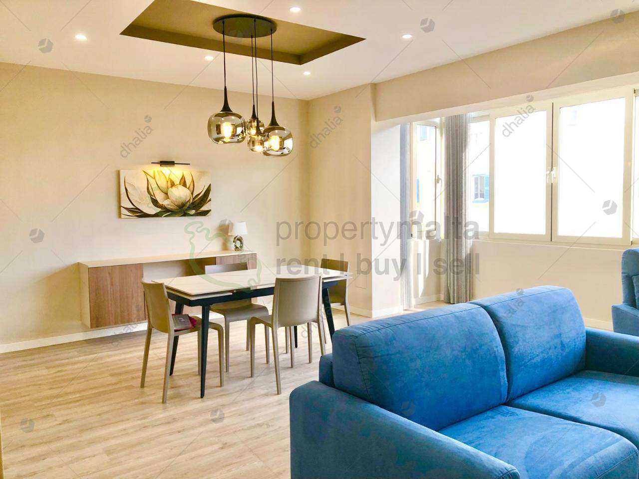 Newly refurbished apartment with brand-new furniture and appliances, featuring three double bedrooms with air conditioning, a spacious entrance hall, two independent modern shower rooms (one with a washing machine), parquet flooring, a fully fitted kitchen with electric oven, microwave, and dishwasher, a separate lounge/dining area with a wall-mounted TV unit, side sea views, and an excellent location close to the beach and all amenities.