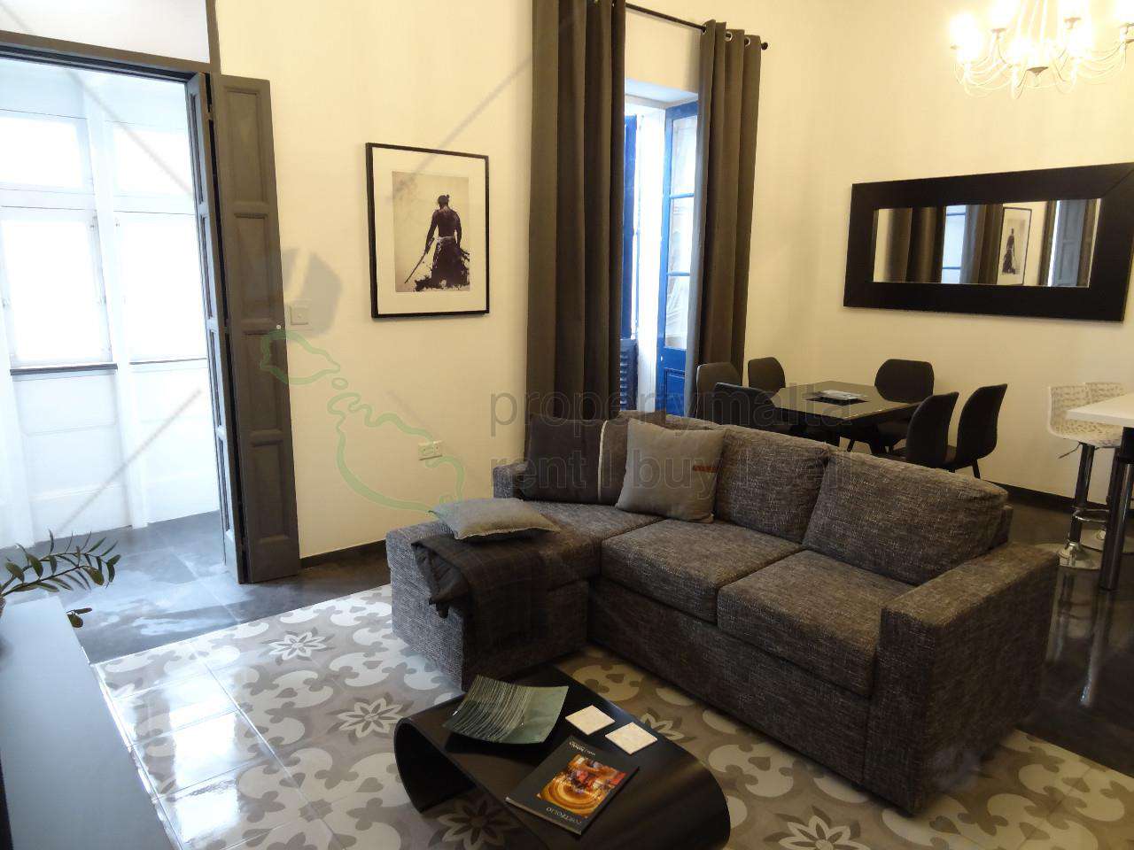 Two-bedroom apartment located in the heart of Sliema, close to all amenities. Layout is in the form of an open-plan kitchen/living/dining area, two double bedrooms main with ensuite facilities and a main bathroom. Property also enjoys two balconies and comes fully equipped, air conditioned and served with lift.