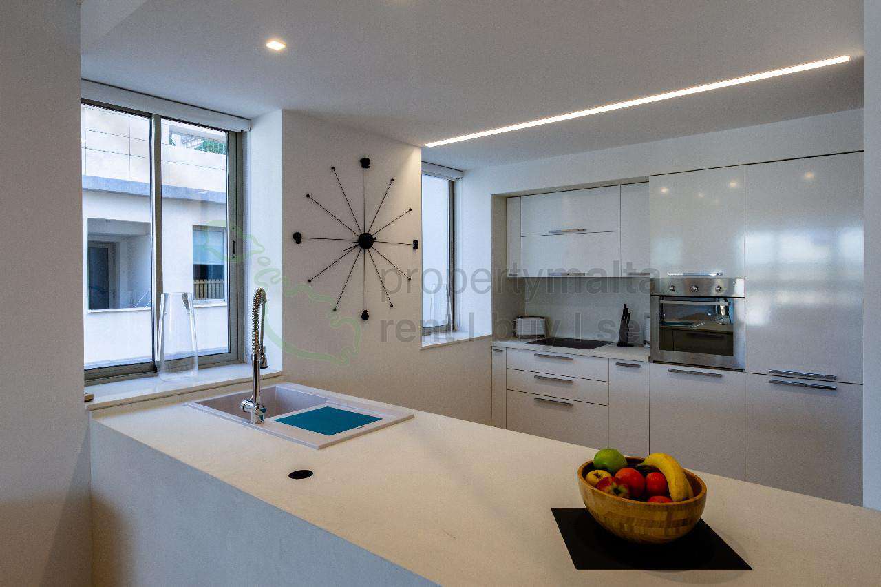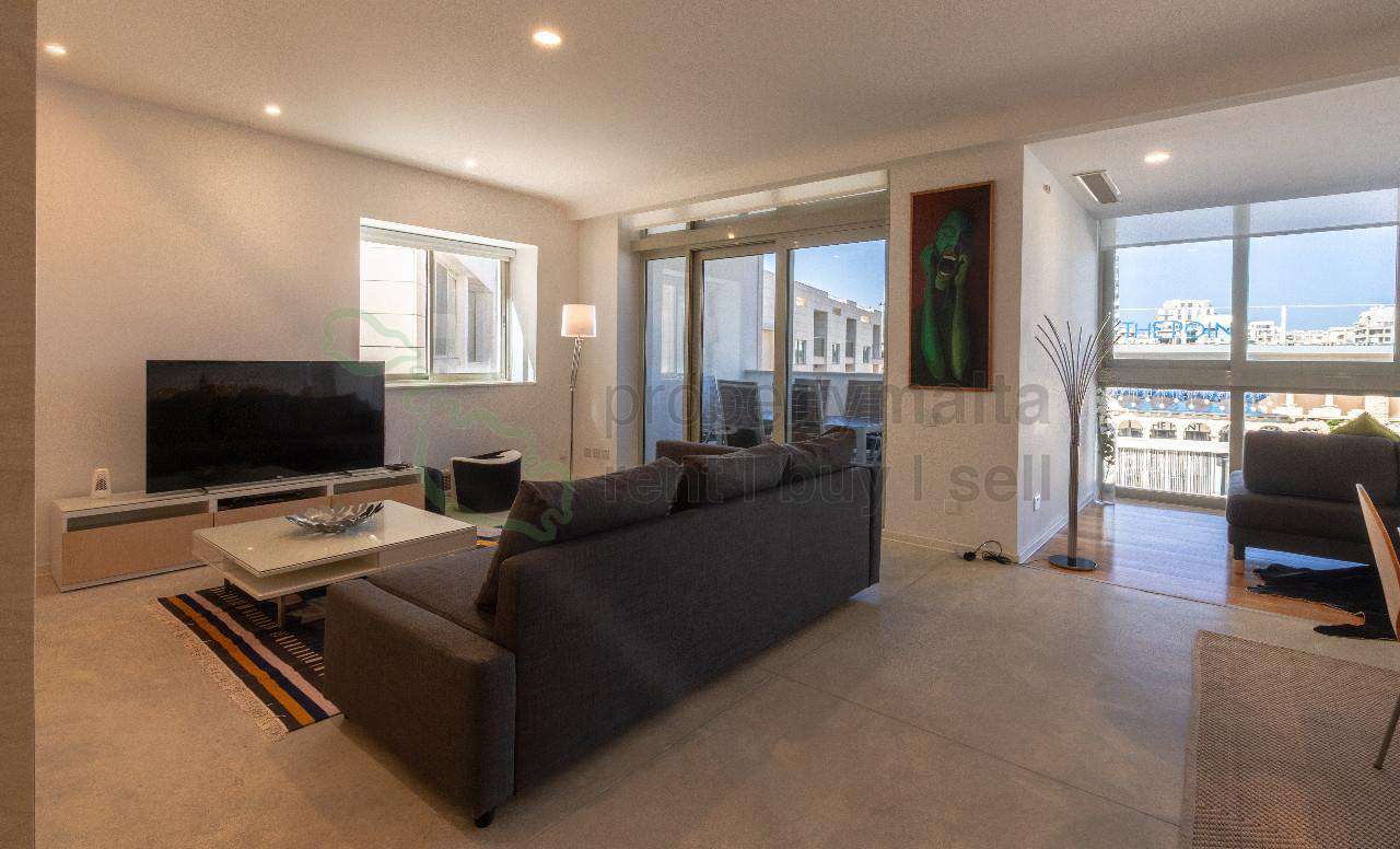 A luxuriously finished apartment, in Tigne Point having distant sea views. The property comprises an open-plan kitchen/living/dining area leading to a good-sized balcony overlooking the piazza, a double bedroom with an ensuite facility, a twin bedroom with a shower room, a guest toilet and access to a private roof ideal for entertaining. The apartment is accompanied by a one-car space.