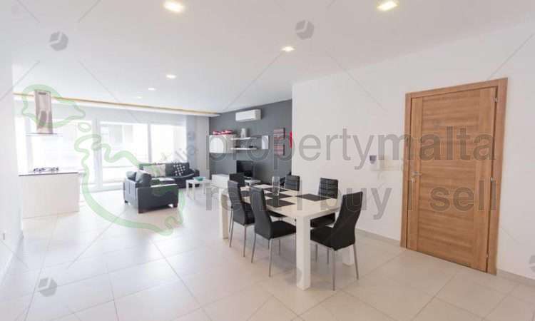 Side sea views three bedroom apartment in a quiet street of Sliema. The layout comprises of an open plan kitchen/living/dining, a main bathroom, two double bedrooms (main with ensuite), one single bedroom and a small front balcony. The property is fully equipped with air conditioning and all modern day luxuries. Optional garage available.
