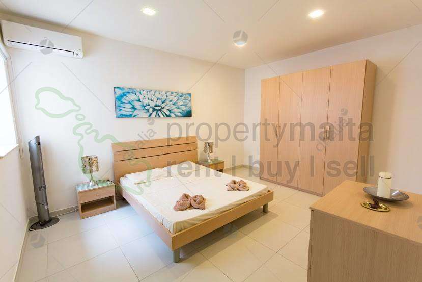 Side sea views three bedroom apartment in a quiet street of Sliema. The layout comprises of an open plan kitchen/living/dining, a main bathroom, two double bedrooms (main with ensuite), one single bedroom and a small front balcony. The property is fully equipped with air conditioning and all modern day luxuries. Optional garage available.