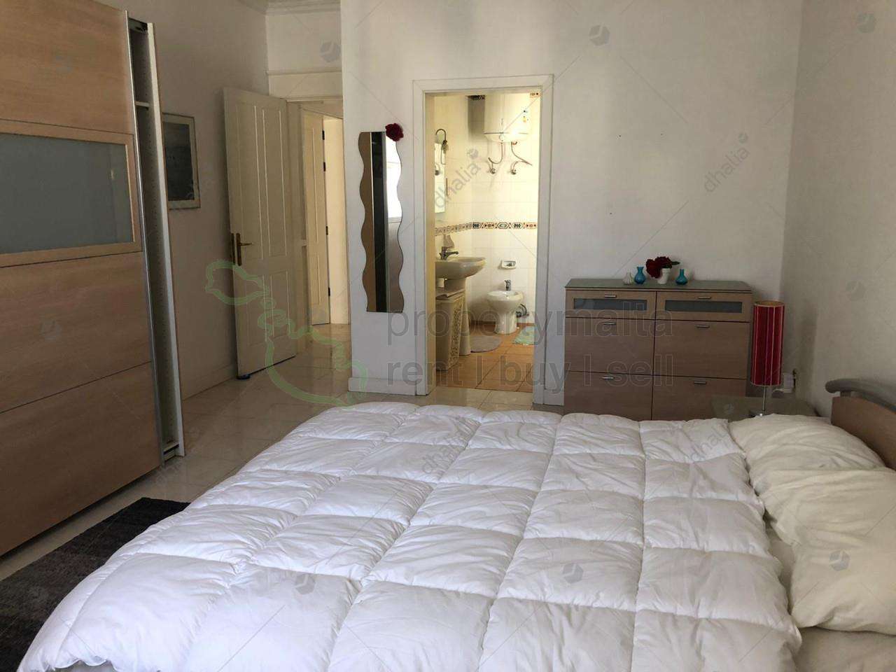This two-bedroom apartment is very centrally located at a stepping stone from Sliema magnificent seafront promenade and all the shopping district. Entrance into the hall leading to a separate kitchen/dining space and lounge/dining area leading to a front terrace. The main bedroom has an ensuite bathroom and there also is a large independent bathroom. The apartment has lots of light and is around twenty years old, giving the feeling of a bright and airy layout. Car space included.