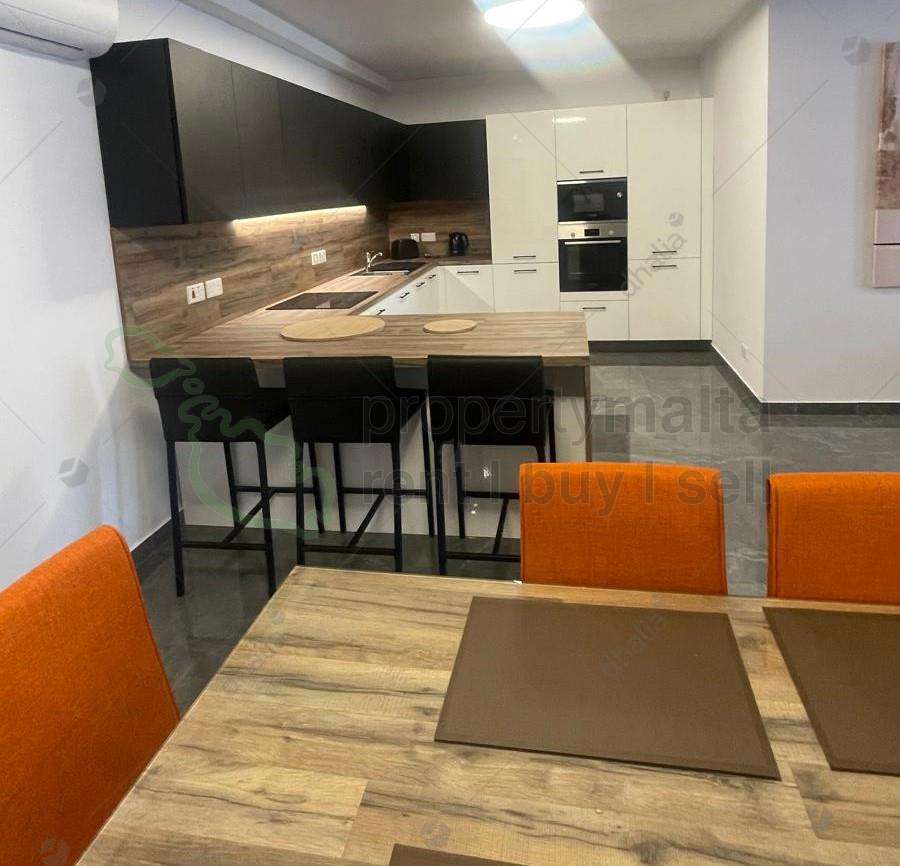 A newly-built, highly finished and luxuriously furnished wide-fronted apartment forming part of a corner development located in Tigne, just seconds away from the promenade. The accommodation is on he high floor with a practical layout, having all the rooms facing the road. It comprises a spacious kitchen/dining/living, bathroom, three bedrooms (main with ensuite), a utility room, a traditional Maltese balcony, and three open balconies. An underground car space is optionally available for €50,000.