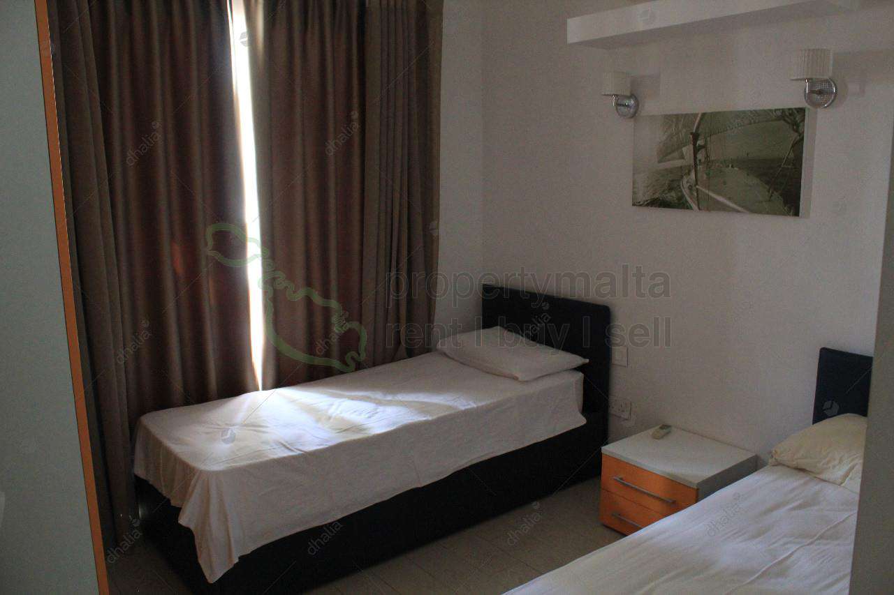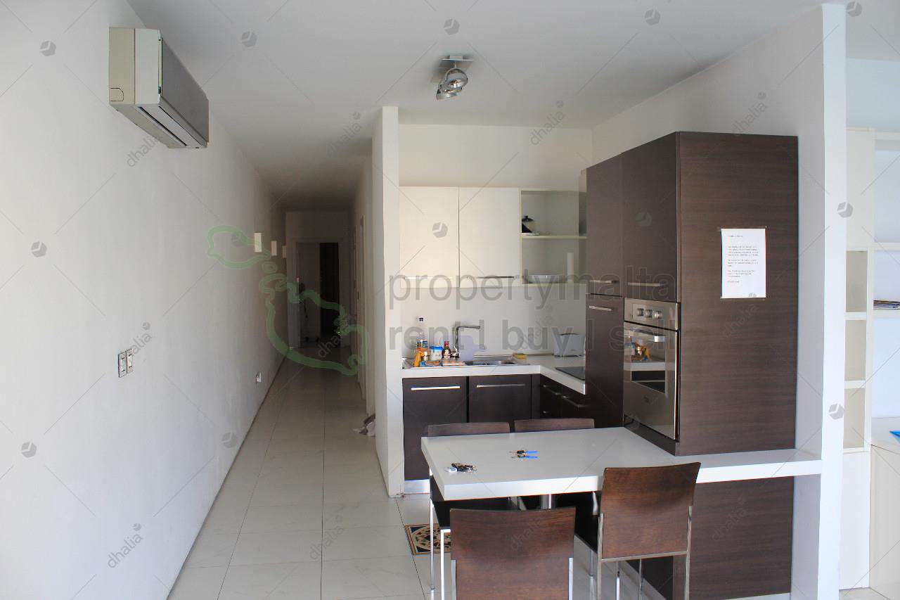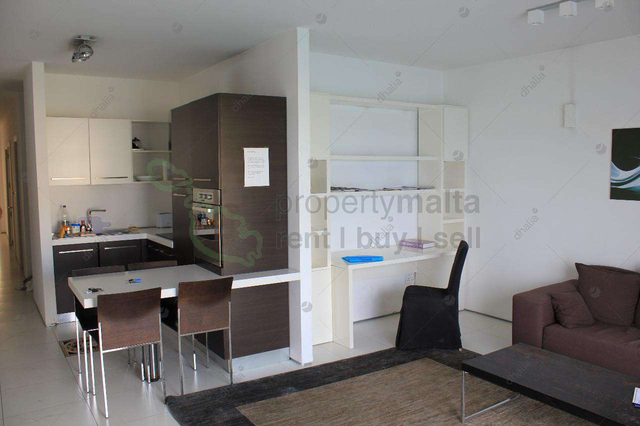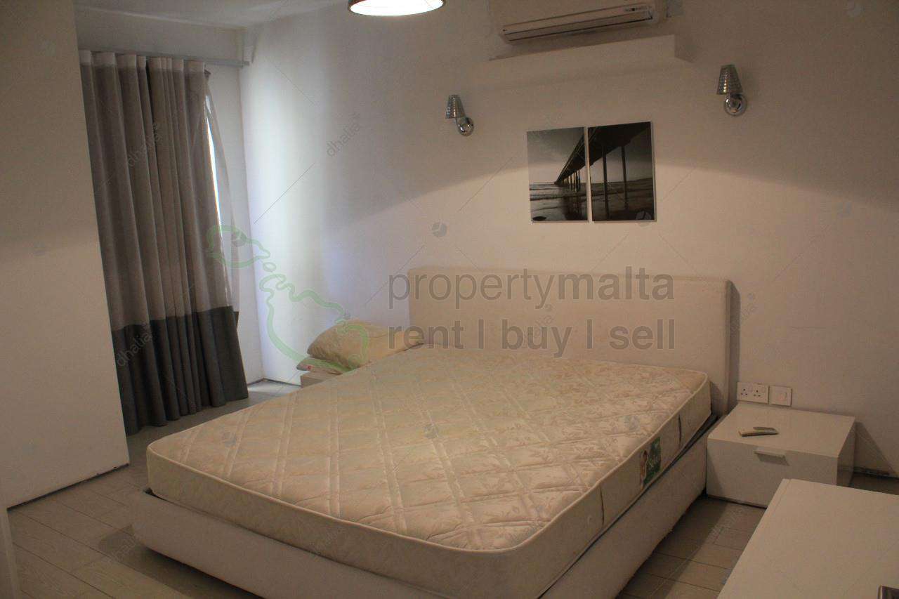 Seafront apartment right in the heart of St. Julians, having splendid views of Spinola bay and beyond. This apartment consists of an open-plan kitchen/living/dining area, main bathroom, utility room, and two double bedrooms, the main having an ensuite. The property is being sold fully furnished and with two car spaces in the underlying garage.