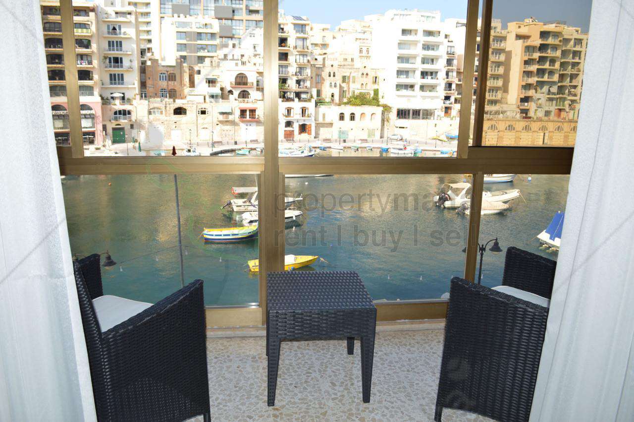 Seafront apartment situated in St Julian`s, just in front of the Marina/Promenade and close to all restaurants. Layout consists of an open plan kitchen/living/dining area leading to a front balcony with sea views, one double bedroom with ensuite, one single bedroom, a main bathroom and a back balcony. This apartment is modernised and is served with lift.