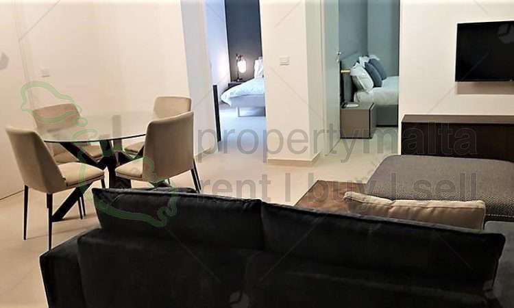 Designer-finished and furnished first-floor two-bedroom apartment situated just off the St Julians Balluta Seafront and all amenities. The property consists of a welcoming hallway leading to an open kitchen/living/dining area, main bathroom, two double bedrooms and main having ensuite facilities. The property comes fully equipped and air-conditioned throughout. Served with lift.