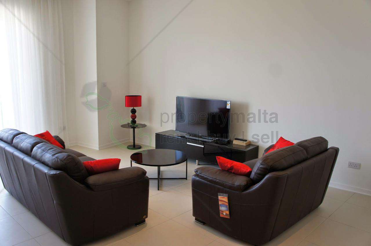 Third floor apartment situated in the heart of St Julians comprising two bedrooms, two bathrooms (one ensuite) sitting/dining/kitchen area, back veranda with valley/sea views and two balconies. Furnished and finished to high specs including air conditioning, double glazing throughout, LED energy saving lighting etc… Lock-up two car garage also included.