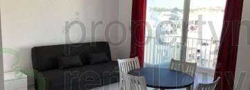 A spacious and well-furnished three-bedroom apartment comprising a kitchen/living/dining, shower en suite, bathroom, washroom, and side sea views.