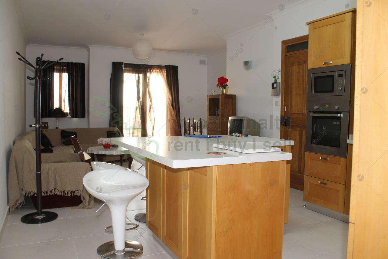 A very neat large apartment consisting of three double bedrooms, two bathrooms (main en-suite with a shower) a washroom with a washing machine leading off the main bedroom, a small study, and a back balcony. The third bedroom has three single beds. The kitchen/dining/lounge is open plan leading onto a very nice terrace ideal for sundowners! A garage space is also available.