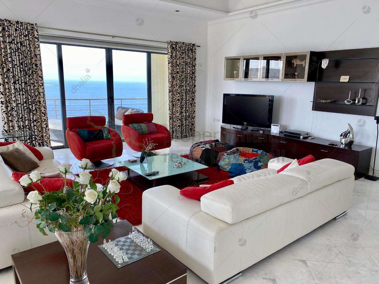 Unique seafront apartment located in the most elite block of St. Paul`s Bay. The property consists of a large open kitchen/living/dining leading onto a spacious front balcony perfect for entertaining, a laundry room, bathroom, three double bedrooms (main with shower ensuite), and a back balcony enjoying country views. The property enjoys fantastic sea views from all rooms. Complementing this property is a lock-up garage. Not to be missed!!
