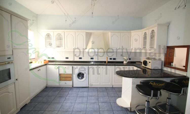 A second-floor apartment situated in the center of St Paul`s Bay. The layout consists of a large open plan, two balconies, a separate kitchen, two bathrooms, a box room, three double bedrooms, a wide corridor, and a back balcony. Block of only six units, no lift.