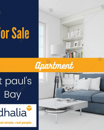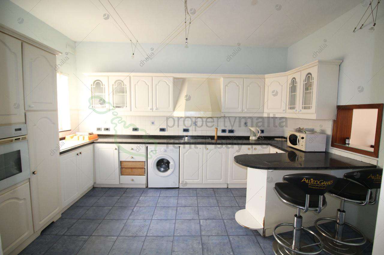 A second-floor apartment situated in the center of St Paul`s Bay. The layout consists of a large open plan, two balconies, a separate kitchen, two bathrooms, a box room, three double bedrooms, a wide corridor, and a back balcony. Block of only six units, no lift.