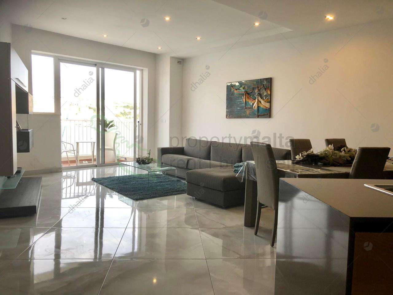 A luxuriously finished and furnished three-bedroom seafront apartment. The layout comprises a spacious open-plan kitchen/living and dining area leading onto a balcony enjoying stunning open sea views, two double bedrooms (with the main bedroom enjoying ensuite facilities), and the main bathroom. The property comes fully equipped and is air-conditioned throughout. Further complementing the property is a lock-up garage space.