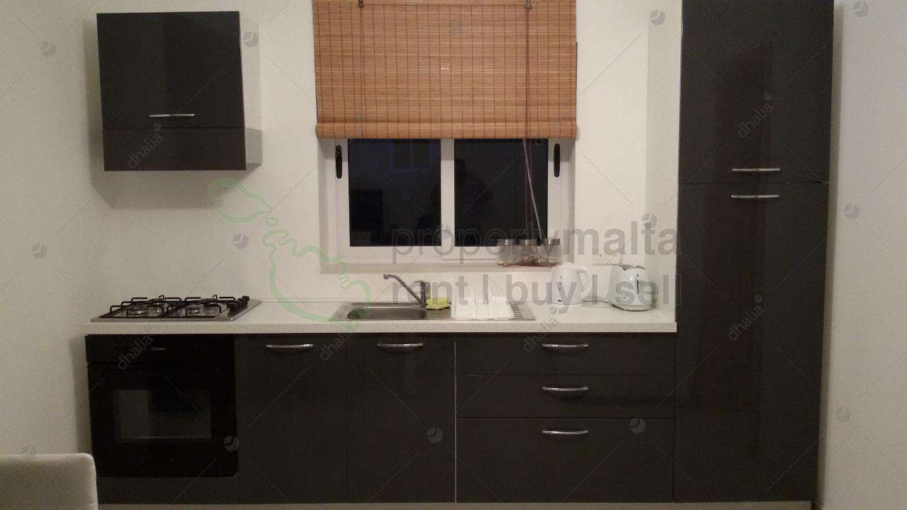 Modernised apartment forming part of a recently finished block situated in Swieqi, Layout consists of an open plan kitchen/living/dining area, a bathroom and one bedroom with a front balcony.