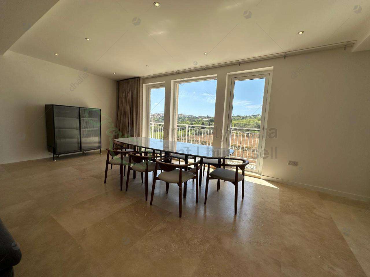 Spacious, highly finished apartment being sold inclusive of designer furniture. The property comprises a large living/dining area, a separate fully fitted kitchen, both of which lead onto a front balcony enjoying valley views. It also features three double bedrooms, three bathrooms, a box room, a laundry room, and a back terrace. An optional garage is available.