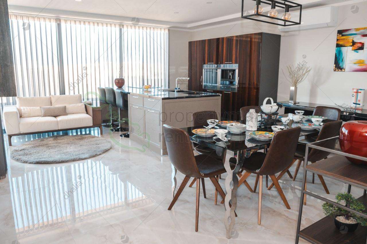A new, 107sqm fifth-floor fully-furnished apartment situated on high grounds in Ta` l-Ibrag on a quiet residential road. Forming part of a small and well-kept apartment-block, the property comprises two double bedrooms, a good-sized fitted kitchen/living/dining leading to a wide front terrace enjoying partial open views, en-suite shower, main bathroom, back balcony. The new furniture, fitted-kitchen, appliances, fixtures and other fittings are all of a high standard/quality. Served with passenger lift. As the property is situated on two roads, it internally enjoys an abundance of natural light. An optional underlying one-car parking space is available. Being sold on a Freehold basis. Contact us for a viewing appointment.