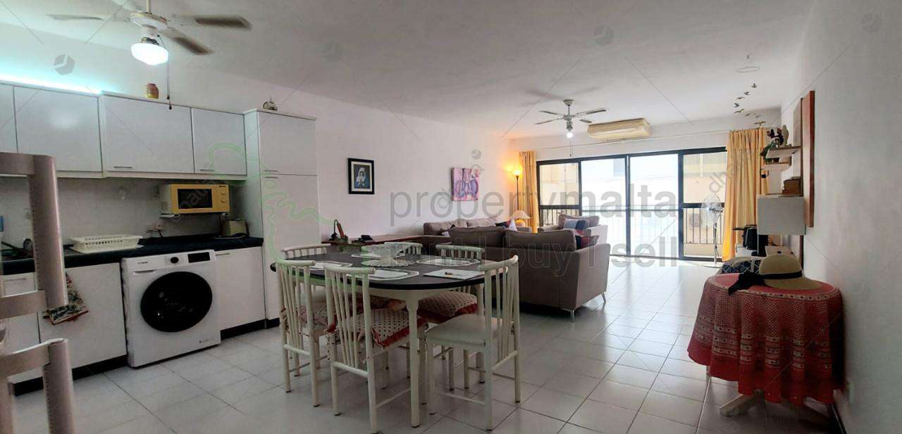 A spacious apartment which consists of a large open plan with a kitchen/living TV area/ dining space. This whole area which is air-conditioned and leads to a balcony with a good partial sea view. The property also features three double bedrooms, main bathroom and a guest toilet. It is fully furnished and served with a lift. Includes everything and is ready to move into. Appealing as a family home or rental investment.