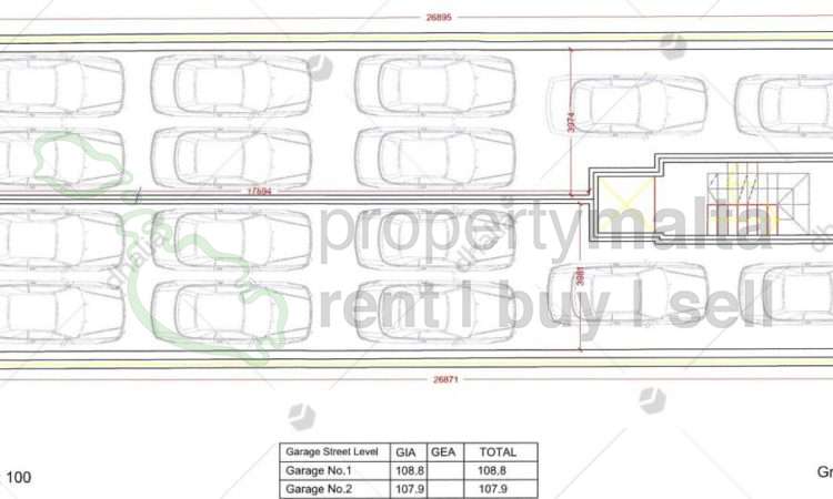 A spacious street-level garage covering approximately 217 square metres, with a capacity for 16 cars. The garage is fully finished, including facade, flooring, electrical and plumbing installations, and plastering. Ready for immediate use.