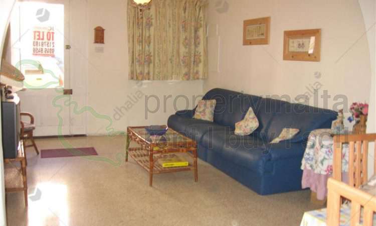 Spacious two-bedroom ground floor maisonette situated in Bugibba. The property consists of large kitchen/living/dining, a front patio, a back yard, and a bathroom.