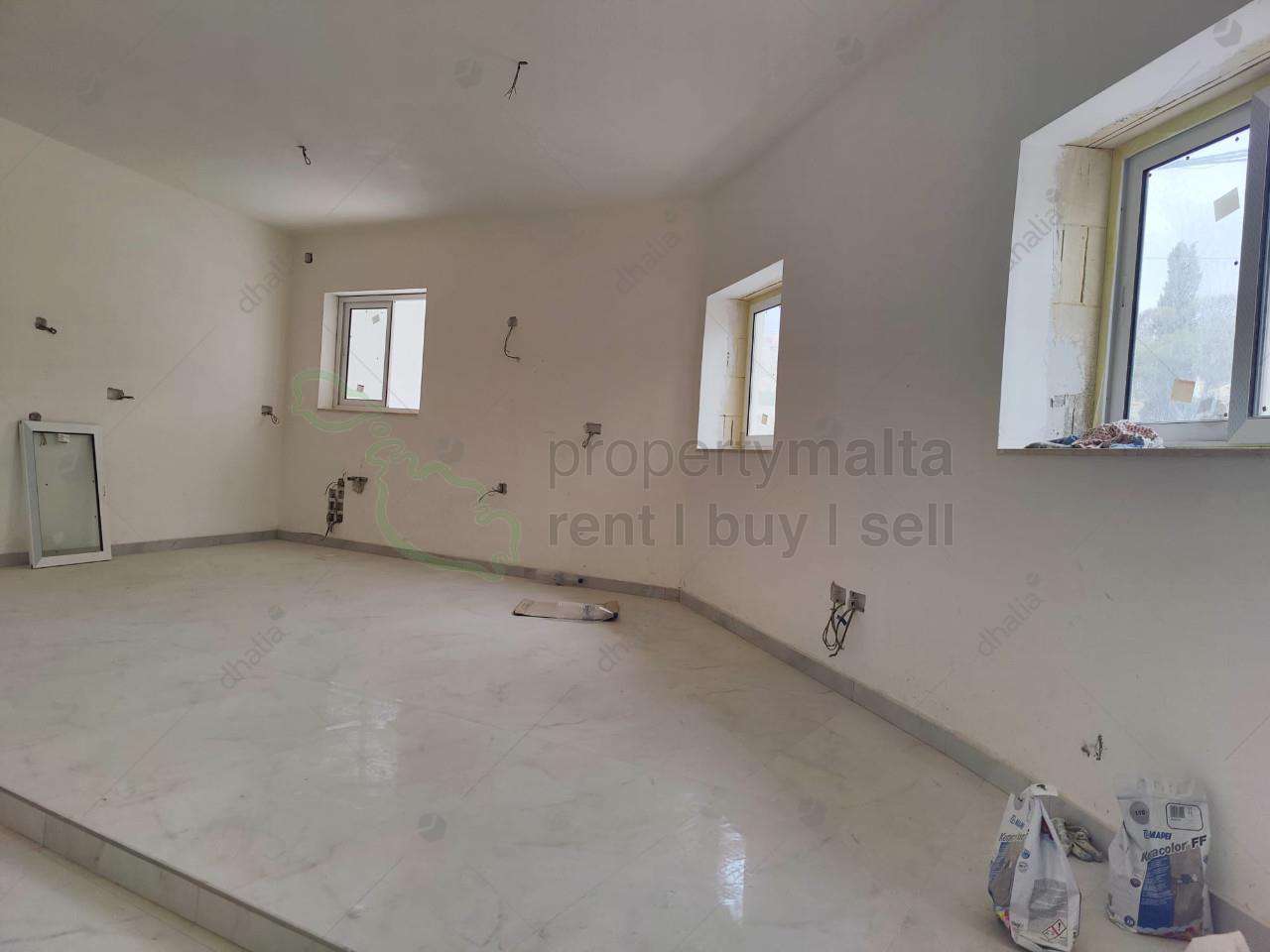 Just built two-bedroom ground floor maisonette located in an urban conservation area on the outskirts of Cospicua. The property consists of an open-plan kitchen/living/dining area, bathroom, two double bedrooms, a main with ensuite and a backyard ideal for entertaining. Will be sold finished excluding bathrooms and doors. Optional garage also available. Freehold.