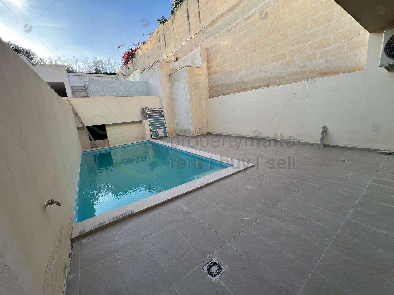 Brand new ground-floor maisonette for rent in the tranquil village of Kercem. This spacious property features three double bedrooms and two modern bathrooms, finished to high standards throughout. Enjoy a private pool, ideal for outdoor living and entertaining, along with a private garage. Fully equipped with contemporary finishes and designed for comfort, this is an excellent opportunity to rent a stylish home in a peaceful yet convenient location.