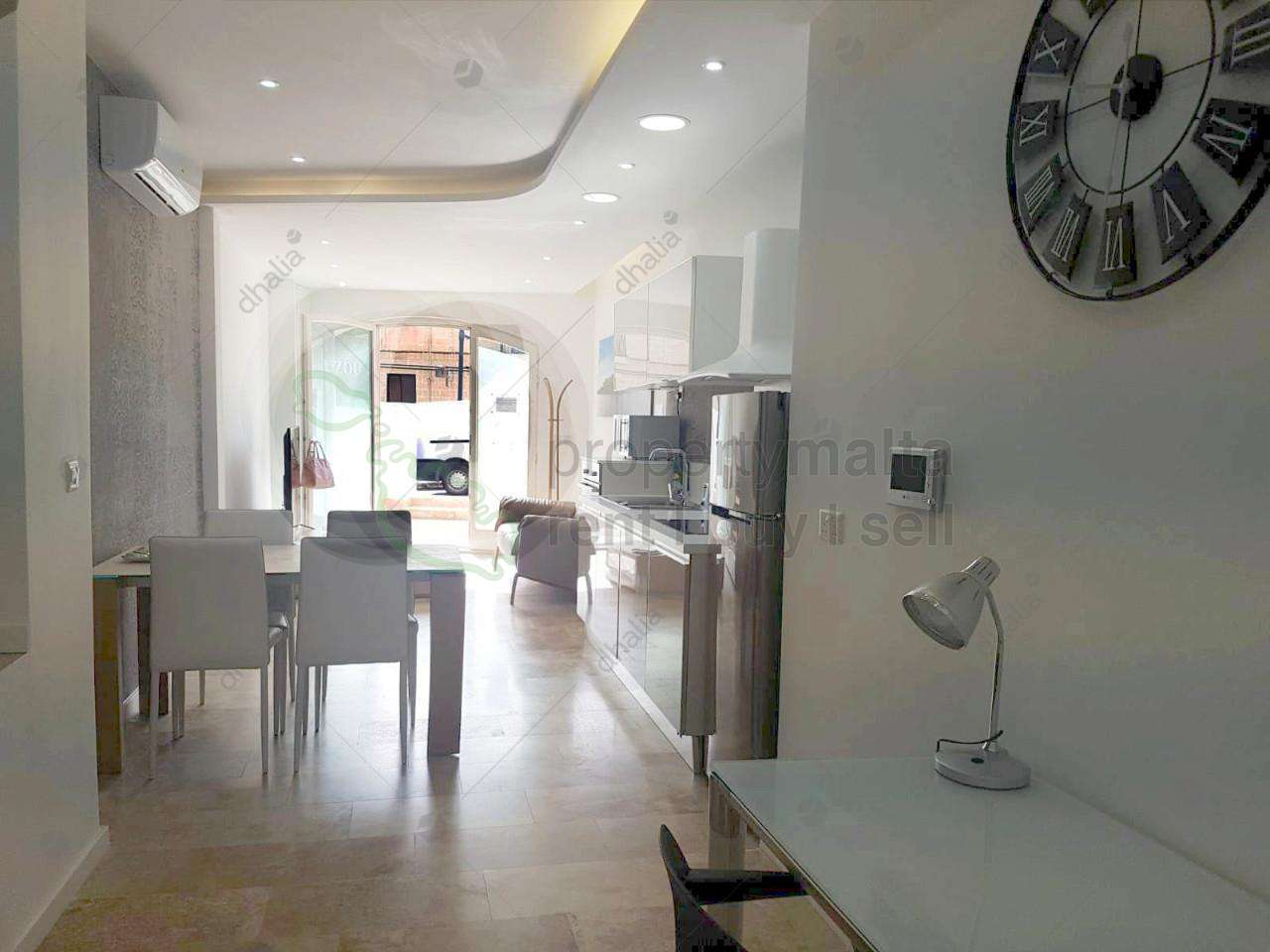 A highly-finished two-bedroom maisonette in a quiet area of St Julians, close to Spinola Bay and all amenities. The maisonette consists of living/kitchen/dining area, two double bedrooms, and shower room. IPTV and internet included in price.