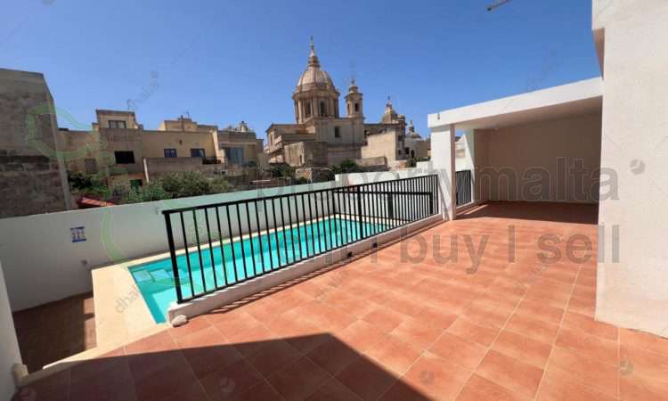 Located in the heart of Nadur, this beautifully designed home offers five bedrooms and five bathrooms, perfect for families or groups. The property features a private pool with ample lounging space, and breathtaking views of Nadur’s iconic church. Just steps away from cafes, shops, and the village square, it combines modern comfort with authentic Gozitan charm.