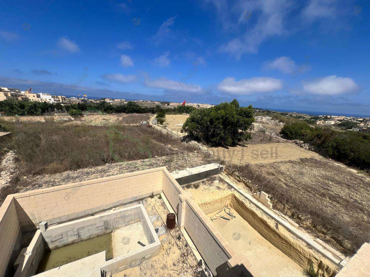Tucked away in a quiet alley in the heart of San Lawrenz, this charming house of character is set in a very tranquil area. Being sold in shell form, it offers great potential to finish to your taste. On the ground floor, a large hallway leads to a spacious open-plan kitchen/living/dining area, a bedroom with ensuite, a guest toilet, and a generous outdoor space with a swimming pool and terrace enjoying open views. The first floor features four bedrooms, three with ensuites, and a back terrace overlooking the pool. On the second floor, there`s another bedroom with ensuite and a large terrace with panoramic views. A rare opportunity in one of Gozo’s most peaceful villages!