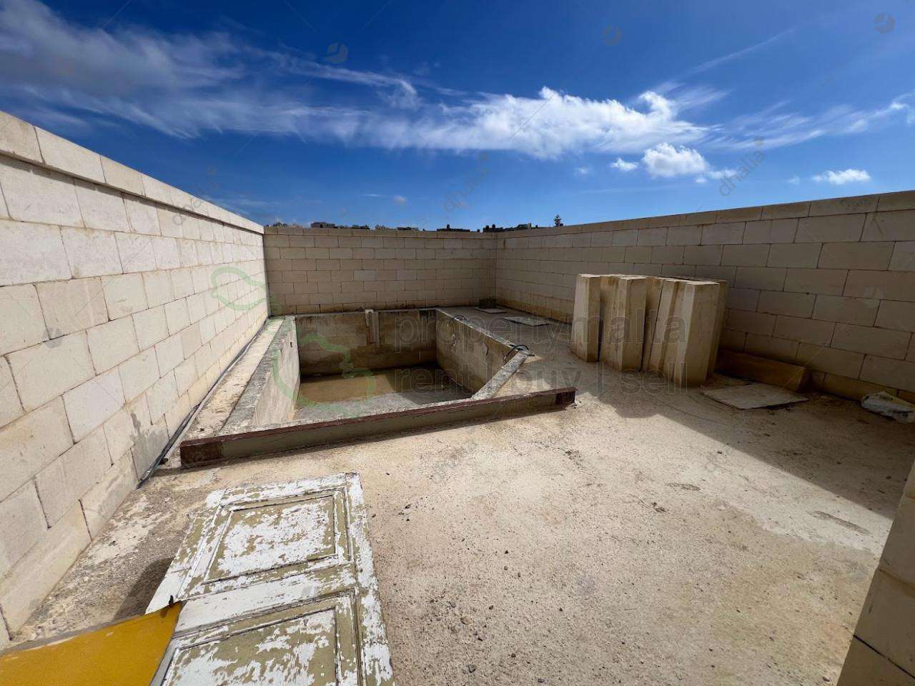 This house is located in a very nice area in Xaghra. The ground floor features a sitting room on entrance, an open plan kitchen and dining room leading to a very nice and spacious pool and decking area and a main bathroom. A new stone staircase leads to the first floor where one will find a welcoming hall, three bedrooms (one with ensuite facility), a main bathroom and a back balcony overlooking the pool area and views. A good-sized laundry room and two large terraces are found on the second floor. complementing this unique house are a street level garage, domestic store and a wine cellar at basement level. Excellent opportunity!