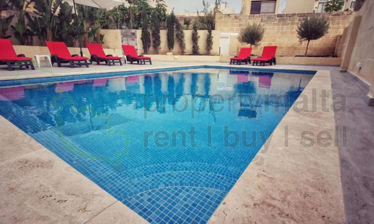 This property, located in a tranquil area of Xewkija, is a brand new maisonette. It consists of three double bedrooms, one of which with an en suite, and a main bathroom. The property has a combined kitchen/living/dining area which leads to a private pool and BBQ area.