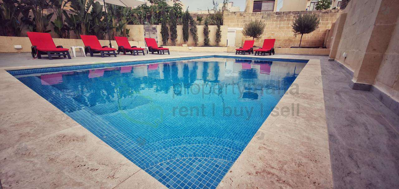 This property, located in a tranquil area of Xewkija, is a brand new maisonette. It consists of three double bedrooms, one of which with an en suite, and a main bathroom. The property has a combined kitchen/living/dining area which leads to a private pool and BBQ area.