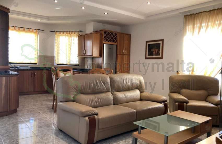 Bright and spacious, two-bedroom, two bathroom maisonette situated in central of Mosta. The property consists of an open-plan kitchen/dining/living area, two double bedroom, a study room, a laundry room and a backyard ideal for entertaining.