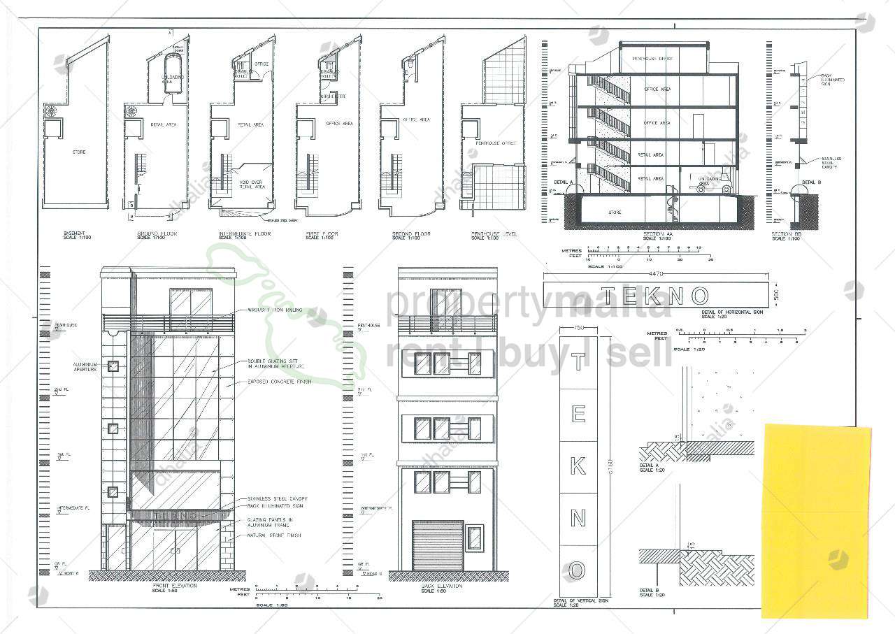 Block of offices in the heart of Mosta, close to all amenities, having a total floor area of two hundred and seventy five square metres with approximately sixty five square metres per floor finished to high specifications.