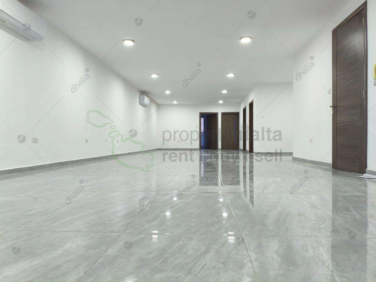 Finished and modern 185 square meter office in Mosta available for rent, offering 162 square meters of internal space and 23 square meters of outdoor areas. This bright, well-laid-out workspace includes a massive open plan, two meeting rooms, a kitchenette, and two bathrooms, making it ideal for professional use. The property also features a spacious front terrace and a second rear terrace, providing excellent outdoor areas for breaks or informal meetings. A great opportunity for businesses seeking a comfortable, ready-to-use office in a central Malta location.