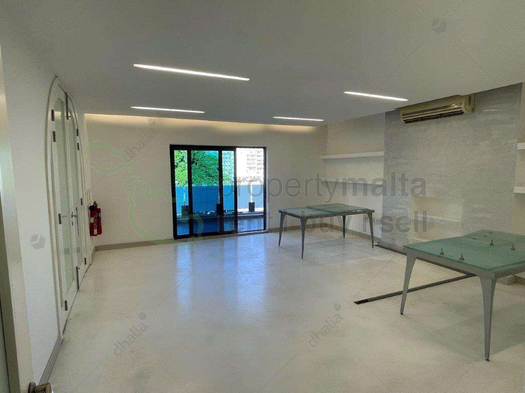 156 square-metre office in a good commercial area in a block of four offices served with a lift. This seafront office has good marina views and is fully air-conditioned and parquet flooring in all main rooms. The layout comprises an entrance hall reception area, one large room and a board room overlooking the marina. Kitchenette, main shower and three good-sized rooms. Ample storage space is available.