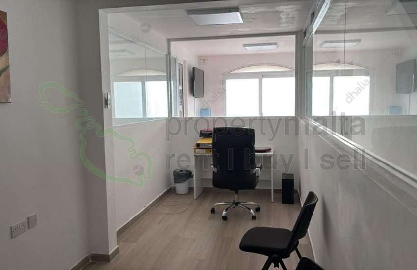 An office situated in the center of Valletta is being offered finished. The office consists of three rooms, all of which are moderately sized and have ample natural lighting. It also includes a main bathroom and a vault, along with an entrance of its own. Currently, the office includes some furniture and desks which can be removed or kept depending on the clients` preference. No kitchen is available, though the office has many cafes nearby
