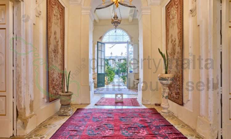 One-of-a-kind corner, imposing Palazzo in the heart of Zebbug, designed by grand master De Rohan and located within walking distance from the church. It is situated within an urban conservation area (UCA). This double-fronted Palazzo consists of a large vaulted entrance hall leading to a magnificent drawing room with stone statues representing the four seasons and other ornamental stone features. A formal lounge and dining room, a study, a fully equipped kitchen, all lead onto a vast garden. Up an imposing staircase, one finds a grand sala nobile, five double bedrooms (four with ensuite facilities), another sitting room, and four rooms in shell form for further expansion. The enormous garden is around 3000 square metres with abundant mature fruit trees. A beautiful belvedere with gardens all around. Complementing this palazzo is another residence next door, which can be connected to the palazzo. This amazing historical palazzo is waiting to be restored to its prior glory. You will appreciate its palatial rooms and magnificent gardens once you have seen it.