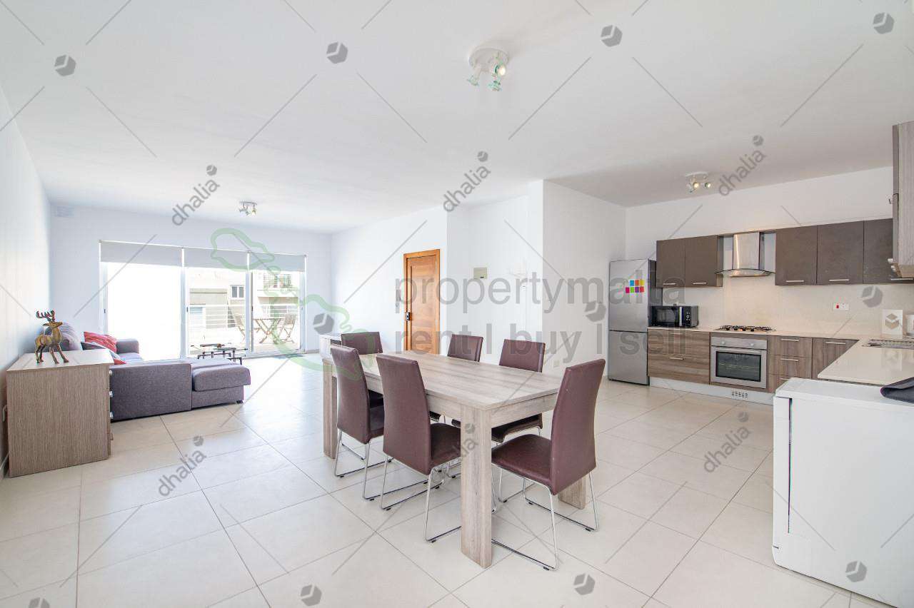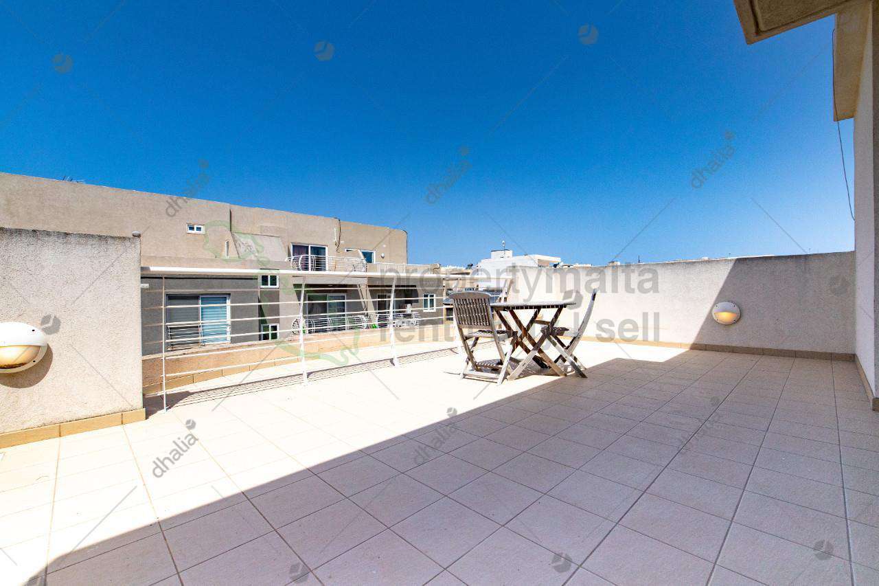 An outstanding wide-fronted and modern two-bedroom penthouse situated within walking distance of all amenities. The front of the property hosts a very large living area that overlooks a large terrace whilst further in is a dining and kitchen area, a spacious laundry room with a small terrace, family bathroom, and two double bedrooms (main with ensuite), and back terrace. The property comes fully equipped and air-conditioned. Served with lift. Optional one car garage is also available