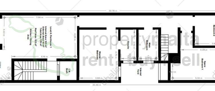 A large and spacious penthouse with its own roof and airspace measuring 170 square metres (total area), forming part of a small block of five units in Birguma. The layout is in the form of a spacious open-plan kitchen/living/dining area leading to a very large front terrace, a master bedroom with an en suite, a main bathroom, and two double bedrooms both having access to the back terrace. Being sold finished, excluding doors and bathrooms. Optional garages are also available.