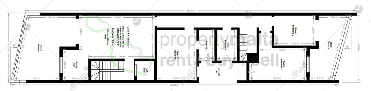 A large and spacious penthouse with its own roof and airspace measuring 170 square metres (total area), forming part of a small block of five units in Birguma. The layout is in the form of a spacious open-plan kitchen/living/dining area leading to a very large front terrace, a master bedroom with an en suite, a main bathroom, and two double bedrooms both having access to the back terrace. Being sold finished, excluding doors and bathrooms. Optional garages are also available.