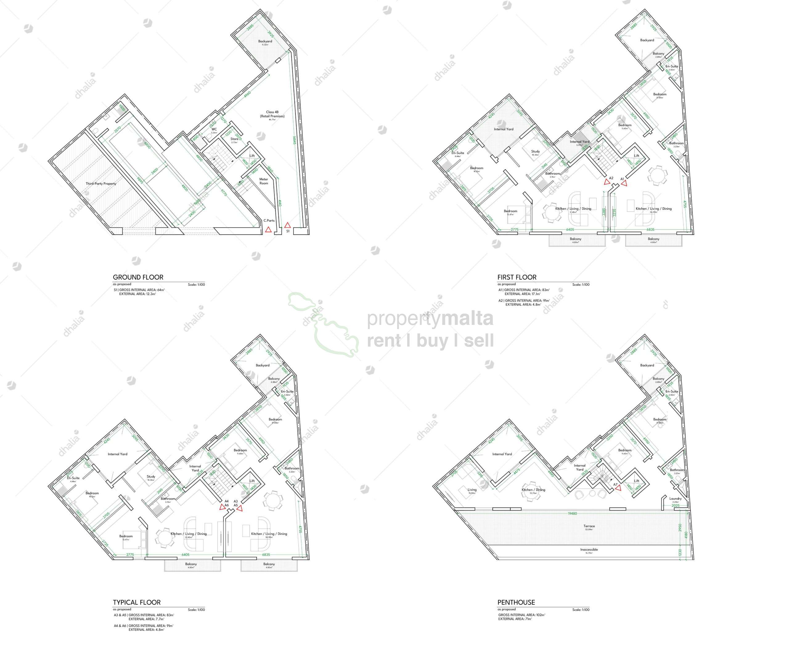 Brand new fourth-floor penthouse having an open-plan kitchen/living/dining with a large front terrace spanning 19 square metres, two bedrooms, a main bedroom with an ensuite, laundry room, main bathroom and back balcony. Selling semi-finished. Served with lift. Freehold.
