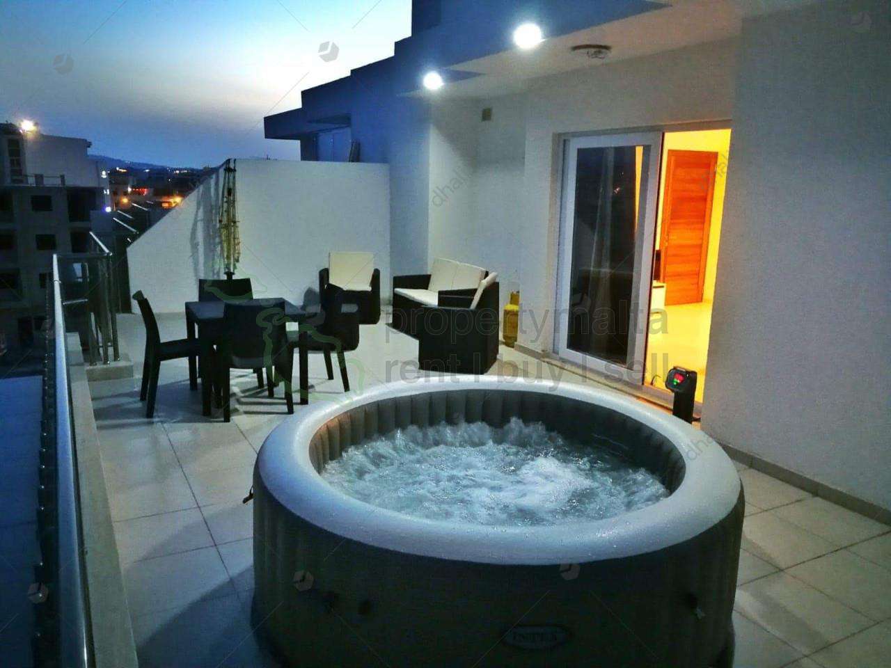A stunning, one-bedroom penthouse in Birkirkara with a great terrace enjoying views, outdoor furniture and a Jacuzzi – a perfect area for entertaining. Property also comprises an open-plan kitchen/living/dining area and an shower ensuite. Property is fully equipped, air conditioned and is served with lift.