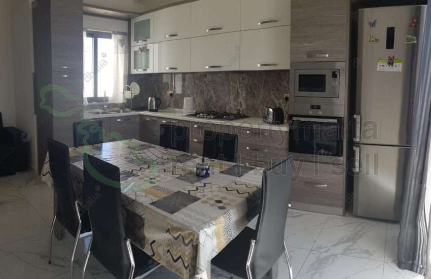 Three-bedroom penthouse located close to the beach. This property consists of a kitchen and dining room with a sea view front terrace, bathroom, two double bedrooms with shower ensuite, single bedroom with a back terrace. Property is served with a lift and is fully equipped.